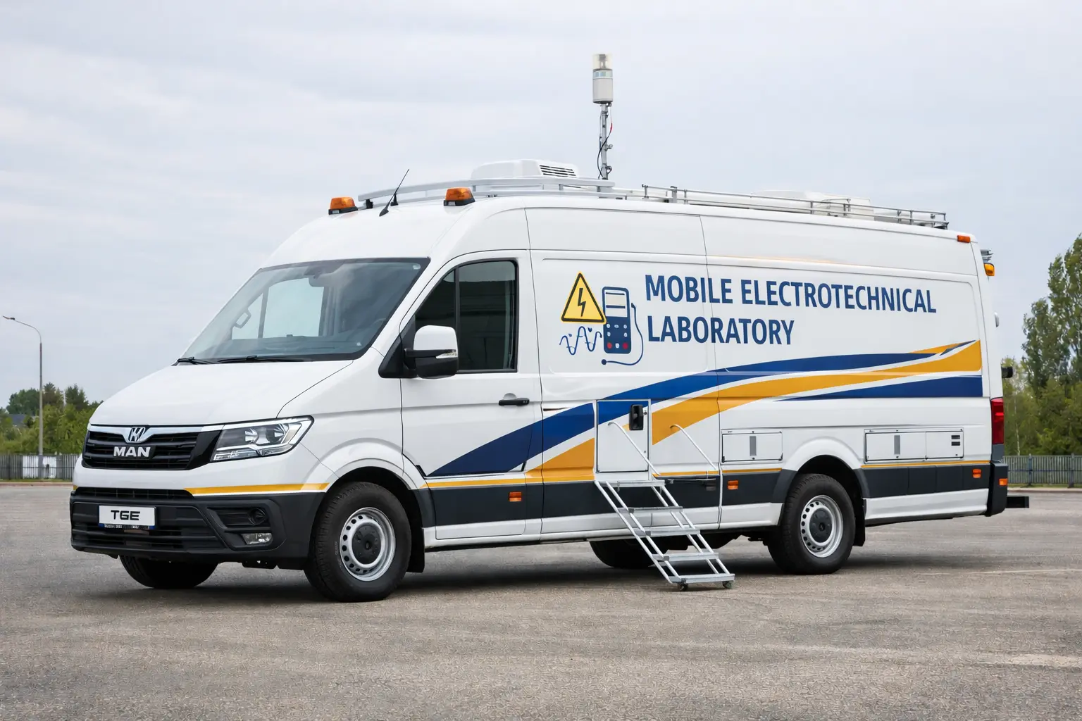 The Mobile Electrotechnical Laboratory based on MAN TGE is a state-of-the-art mobile unit designed for high-precision electrical diagnostics, fault location, and maintenance of electrical infrastructure in both urban and industrial environments. Built on the modern and fuel-efficient MAN TGE van chassis, this solution offers excellent maneuverability, low operating costs, and a fully equipped laboratory in a compact design.