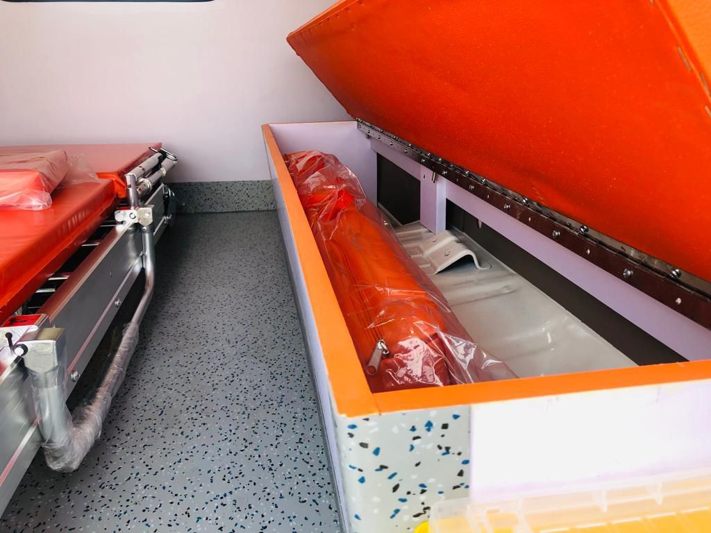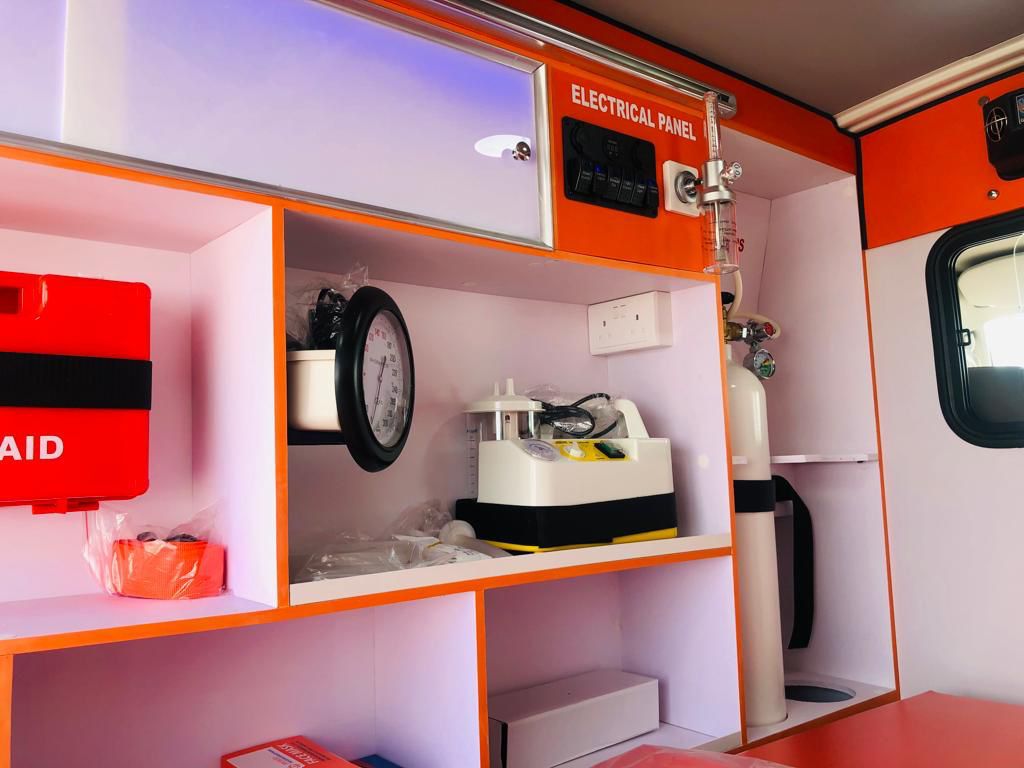 BLS (Basic Life Support) Ambulance: Designed for patient transport and non-critical care. The interior features a durable stretcher system, ample seating for paramedics, essential medical storage, and oxygen supply points. Ideal for routine transfers and supporting primary healthcare networks.